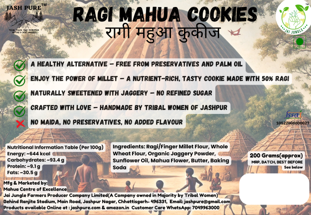Made without refined flour or white sugar, they feature the earthy sweetness of Mahua and the wholesome crunch of Ragi, delivering both flavor and functionality. Every bite supports better digestion, energy, and bone health — while also preserving indigenous food traditions.